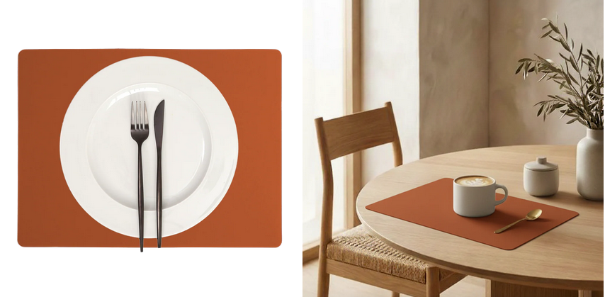 După ce ai stabilit baza, următorul pas este să construiești în jurul ei. Aici intervin accesoriile, suporturi de pahare, mici elemente decorative, obiecte care completează fără să aglomereze. Un truc simplu, dar extrem de eficient, este să păstrezi aceeași textură sau material.Dacă ai ales suporturi din piele pentru farfurii, continuă cu suporturi de pahare în același stil. Această continuitate creează un aspect unitar și elegant. În plus, aceste detalii au și un rol practic. Sunt rezistente, ușor de întreținut și pot fi folosite în orice context, nu doar la mesele festive.