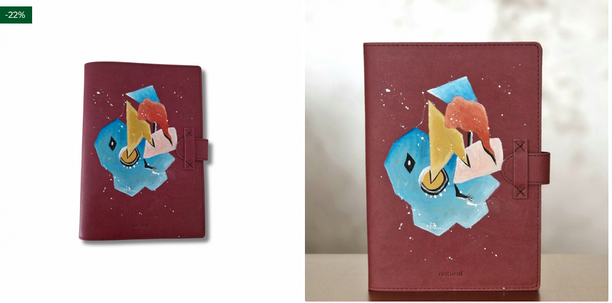 Agenda cu husa pentru agenda din P.U. biogreen, magenta, unicat, pictura abstracta