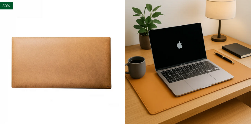 Ideala pentru cei care lucreaza de acasa sau petrec multe ore in fata calculatorului, protectia de birou din piele reciclata aduce ordine, estetica si profesionalism.Suprafata moale, textura premium si durabilitatea materialului transforma spatiul de lucru intr-un loc mult mai organizat si placut. Este un cadou practic, rafinat, usor de integrat in orice decor si extrem de util in perioada aglomerata de final de an.