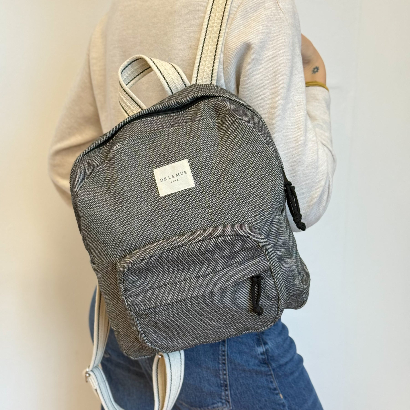 Fabricat din material durabil (80% bumbac, 20% poliester), acest rucsac textil oferă structură, rezistență și un aspect elegant, potrivit atât pentru ținute casual, cât și pentru stil office urban.