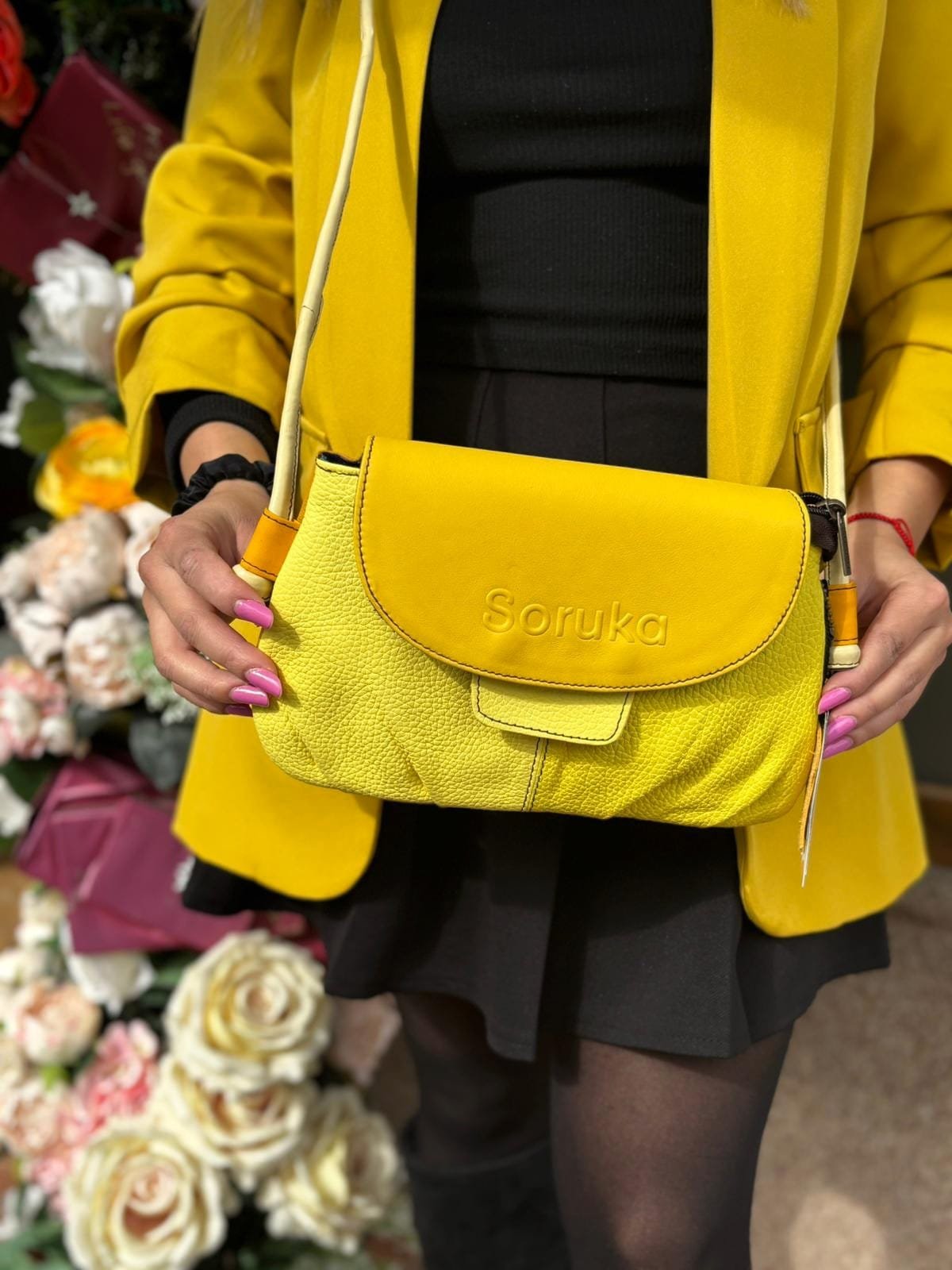 • Culoare: galben muștar & lime, cu logo Soruka embosat