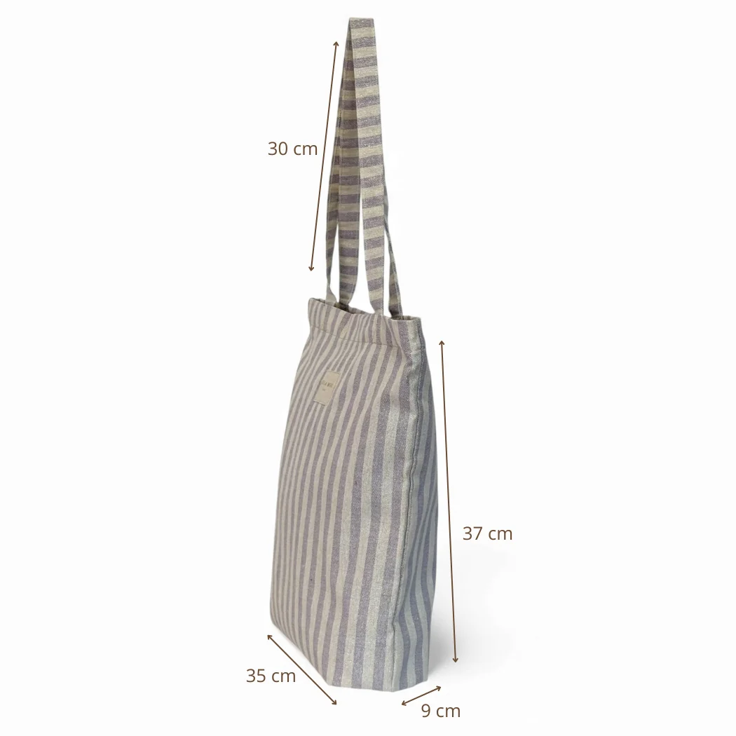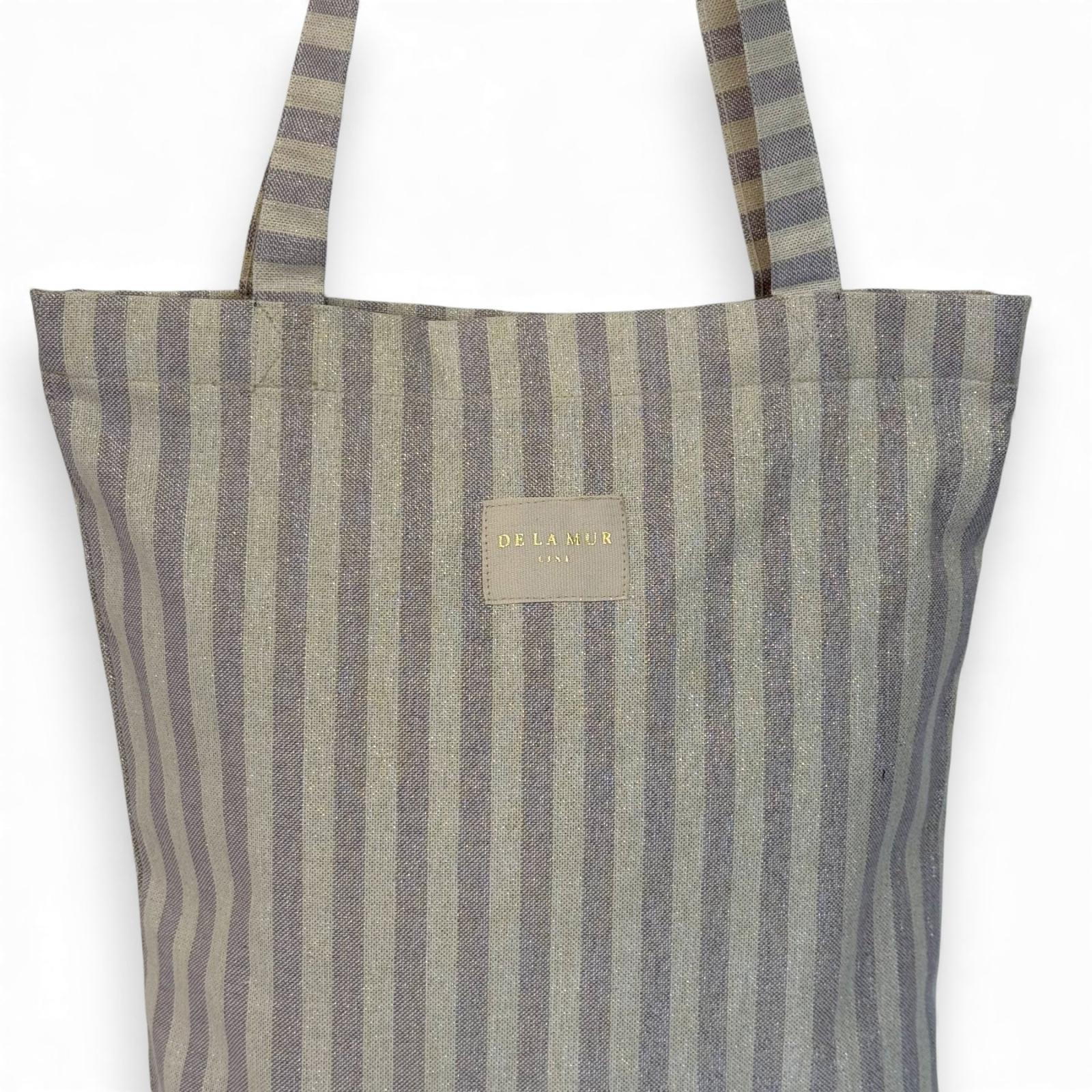 Geantă tip tote cu barete de umăr, realizată din țesătură fină half-panama (80% bumbac, 20% poliester), cu imprimeu în dungi mov.